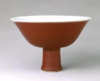 高足碗盛于元代,又稱靶杯,在明代初年亦十分流行。永樂紅釉高足碗彌足珍貴,最負(fù)盛名。