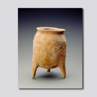 首都博物館藏。泥質(zhì)紅陶。折唇,短頸,深腹,圜底,三錐足。通體拍印繩紋。為燕國文化的典型陶器。