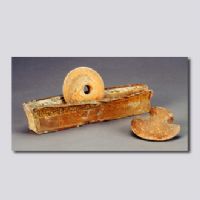 首都博物館藏。由碾槽、碾輪及鉞形鏟組成。外壁施黃綠色釉,施釉不到底。碾輪為扁圓形,中間微鼓,有一圓孔用以安裝木軸,無(wú)釉。碾槽為長(zhǎng)方形,中間有凹槽,胎質(zhì)粗硬。