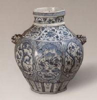圖片名稱: 景德鎮(zhèn)窯青花開光松竹梅紋八棱罐