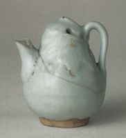 說 明: 器身施較厚的青白色釉,胎色白,底部不施釉,露出火石紅色.