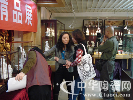 陶瓷愛(ài)好者到現(xiàn)場(chǎng)參觀德化名瓷