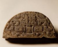 說 明: 泥質(zhì)灰陶。半圓形。制作精制,形象生動(dòng)。
