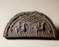 圖片名稱(chēng): 樹(shù)木雙騎紋半瓦當(dāng)