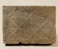 說 明: 泥質(zhì)灰陶。磚面近長方形,磚面上印制菱形幾何圖案紋飾。