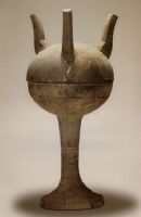 說 明: 泥質(zhì)灰陶。由兩個半球形器組合。上部為蓋,下部為淺盤。