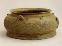 說 明: 原始青瓷。器表施青綠色釉。造型樸實,裝飾美觀,胎質(zhì)堅硬,燒成溫度較高。