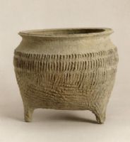說 明: 砂質(zhì)棕灰陶。通體飾粗豎繩紋加弦紋,典型炊器。