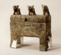 圖片名稱: 彩陶三立犬帶蓋方鼎