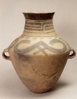 說 明: 泥質(zhì)土黃陶。造型莊重,花紋樸實。