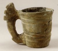 說(shuō) 明: 細(xì)泥質(zhì)灰黑陶。壁表飾兩周寬弦紋。通體磨光,形制別致。