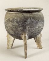 說 明: 砂質(zhì)灰陶,形制為斂口,寬折沿、圓唇,深腹,圓底。