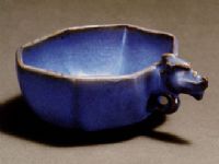 說 明: 醬色胎,胎質(zhì)緊密。器內(nèi)外施天藍釉。造型特殊,制作精巧。