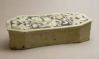 圖片名稱: 磁州窯白釉剔粉持荷娃娃紋八角形枕