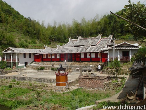 而這諸多廟宇中屬戴云寺最為突出,它位處于赤水鄉(xiāng)戴云村。史載,遠(yuǎn)在南北朝,就有僧人到此開基建寺。唐時,泉州開元寺僧但膊(名知亮)仰慕鐘靈毓秀的戴云山,常自言曰:“身在紫云,顯在戴云。”大中十二年(858年),他逝世后,徒弟將其遺體運往戴云山寺,塑像奉祀,后其師慈感亦在此坐化。兩位僧人同被崇奉為戴云山寺的始祖。該寺始建于五代后梁開平二年(908年),宋端拱二年(989年)僧懷整重建。今寺宇附近尚存有南宋淳佑四年(1244年)建的石板橋,大殿正中有明洪武二十年二月建的拜壇立石,上下殿有清康熙甲子(1684年)、乾隆庚辰(1760年)、乾隆已丑(1769年)部分維修的記載碑石。殿宇系木構(gòu)歇山頂建筑,梁架結(jié)構(gòu)簡單。今寺宇外觀保存基本完整,規(guī)模宏敞,為目前德化保存最大的寺廟。寺內(nèi)目前尚存有明代萬歷三十二年進(jìn)土、書法家張瑞圖題刻的“豪余精舍”殘匾,部分殘缺的木刻楹聯(lián)。戴云寺周圍風(fēng)光秀麗,景物玄奇,昔有十六勝景之稱,許多文人墨土在此吟詩題詠,流連忘返。