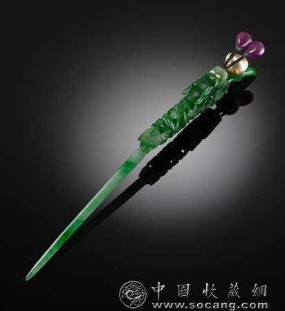 在慈禧太后辭世百年之際,佳士得推出一場“大雅珍寶:慈禧太后與晚清的宮廷藝術珍品”專拍,包括70件與慈禧相關的宮廷藝術珍品,最珍貴的當屬一支御制翠玉透雕盤龍頭簪,估價800萬港幣。