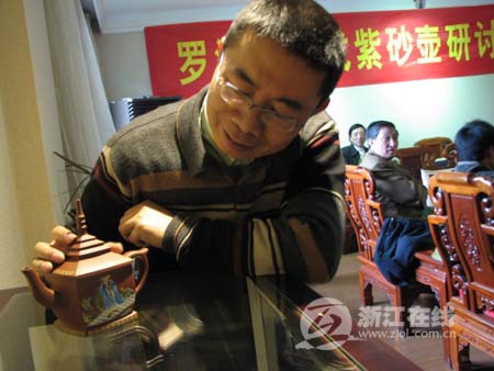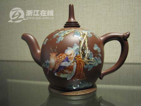 。吃拢玻溉,2把精美絕倫的紫砂琺瑯羅漢壺在西子湖畔唐云藝術(shù)館亮相。這是由原國家文物局局長張文彬為顧問,原故宮科技部副主任曹靜樓為藝術(shù)總監(jiān),專家掛帥、團隊打造的紫砂琺瑯精品壺。