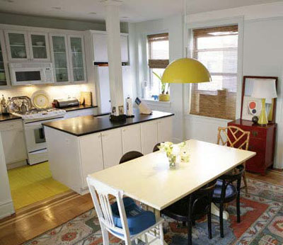 廚房、餐廳和客廳的家具無論是訂做還是購買,式樣一定要選擇簡單,切忌選擇雕刻繁瑣的中式家具、藤編、柳編類家具和布藝沙發(fā)及餐椅。這是為了防止沾染油污,便于清潔。開放式廚房的臺面不應放過多的炊具,以保證其美觀性。