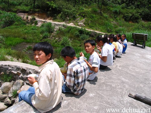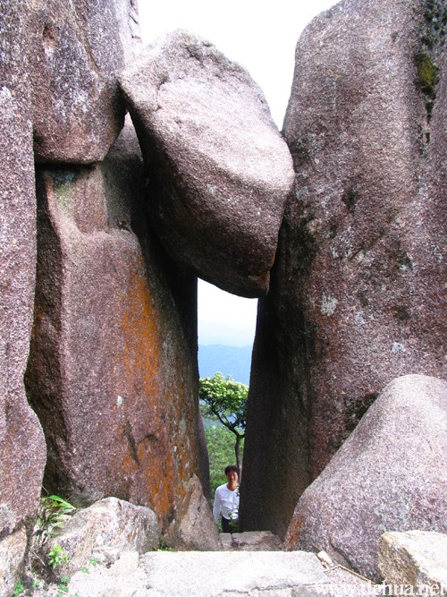 上午九點(diǎn)陽光燦爛,心情也隨之晴朗,我們見到幾位小學(xué)生在在蓮花峰游玩,這群小伙伴昨晚上山原本要找尼姑庵,卻迷了路,在夜晚七點(diǎn)發(fā)現(xiàn)廣欽寺,被寺中僧人收留,安排住宿和伙食,第二天還帶著小學(xué)生到山尋趣,恰巧成了我們拍攝的模特。主峰蓮花峰是叢林中拔地而起的一座小山峰,由一大堆瓣?duì)羁v裂的花崗石組成。遠(yuǎn)觀,像一朵蓮花含苞待放;再遠(yuǎn)眺,則如盛開蓮花。小學(xué)生在蓮花峰舞動(dòng)雙手大聲向我們呼喊。獅子峰是一座巨大的石峰,凜然云表,形狀如同一只傲視蒼天的雄獅。
