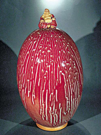 為了賦予鈞瓷新的生命,閻夫立孜孜矻矻于鈞瓷藝術的開拓,大膽革新,銳意求變。閻夫立認為,鈞瓷「生在選土,長在造型,死活在燒成」。在選土上,廣采博選,甚至以黃河泥和麥飯石為原料;在造型上,他將雕塑與瓷藝完美地糅合在一起,創(chuàng)造出了器皿、卵石、人物、動物、神燈等各種系列,以及漢風、唐韻等造型雕塑藝術系列。在燒制方面,他改建了天然氣窰爐,大大縮減燒制時間,合格率提高到九成。