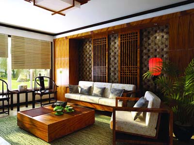 中式傳統(tǒng)太師椅與現(xiàn)代家私的完美結(jié)合,撞擊出和諧的空間感受,由于空間結(jié)構(gòu)上的不合理,為了達(dá)到傳統(tǒng)的對(duì)稱(chēng)統(tǒng)一,運(yùn)用真假壁柜協(xié)調(diào)而完成。主題墻運(yùn)用瓦當(dāng)有順序的排列組合達(dá)到了與磚雕的完美結(jié)合。