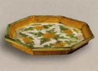 圖片名稱: 三彩釉印泥牡丹花八方盤