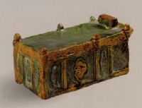 說 明: 紅陶胎,上白色化妝土,施黃、綠兩色。