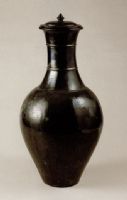 說 明: 淡紅陶胎,細(xì)膩堅(jiān)致。滿施以錳為著色劑的黑釉,釉色黑中帶紫,釉面泛虹光,平整光潤(rùn),底無釉。