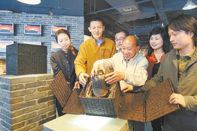 早在唐朝以前,長沙銅官窯陶瓷就面市了,唐朝時達(dá)到鼎盛時期。數(shù)千年歷史的長沙銅官窯陶瓷開創(chuàng)了多個世界之最:最早發(fā)明釉下多彩、最早發(fā)明銅紅釉燒制、最早進(jìn)行釉下彩繪、最早開創(chuàng)模印貼花等等。遺憾的是,銅官窯陶瓷卻一直沒有一個較理想的包裝。省工藝美術(shù)大師,長沙銅官窯陶瓷工藝的唯一傳承人胡武強(qiáng),幾十年來為此花費(fèi)不少心血,從紙質(zhì)、鐵板,到木盒,設(shè)計了多個包裝,可沒一個令人滿意。去年底,一個偶然機(jī)會,’2008北京奧運(yùn)獎牌設(shè)計的主創(chuàng)設(shè)計師、中央美院年輕的教授肖勇,了解到“銅官窯”的傳奇故事和得知長沙銅官窯作品沒有理想包裝后,決定帶領(lǐng)自己的設(shè)計團(tuán)隊免費(fèi)為胡武強(qiáng)老人作品設(shè)計包裝。經(jīng)過幾個月的精心設(shè)計,這一包裝新款最終誕生。
