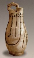 說 明: 陶胎較為細(xì)膩,上白色化妝土,裝飾處點(diǎn)施綠彩,典雅別致。施白釉,不到底。