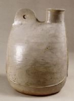 說 明: 壺體上扁下圓,白瓷胎,上白色化妝土,施白色透明釉。