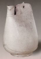 說 明: 壺側(cè)及腹下部凸起線紋,以模仿皮質(zhì)囊壺的縫合痕。
