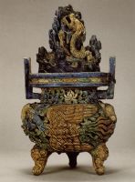圖片名稱: 玻璃鏤空三彩龍鳳熏爐