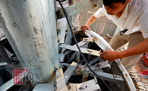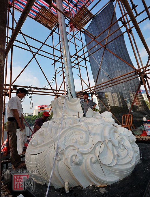 圖為瓷都廣場主題雕塑——巨型陶瓷“渡海觀音”已經(jīng)開始安裝調(diào)試