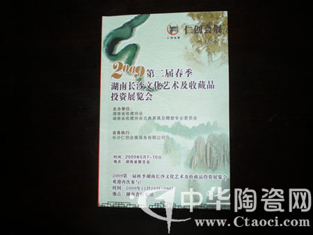 由湖南省收藏協(xié)會(huì)、湖南省收藏協(xié)會(huì)古典家具及雕塑專業(yè)委員會(huì)共同主辦的“2009第二屆湖南長(zhǎng)沙文化藝術(shù)及收藏品投資展覽會(huì)”于2009年5月10日在湖南省展覽館圓滿閉幕。榮獲中國(guó)行業(yè)電子商務(wù)網(wǎng)站100強(qiáng)的中華陶瓷網(wǎng)成為本次展會(huì)合作媒體,進(jìn)一步宣傳了展會(huì)情況及中國(guó)文化的底蘊(yùn)。