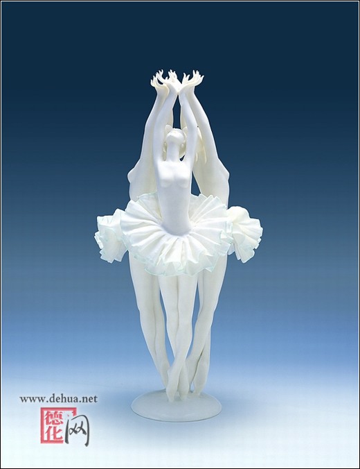 1993年,陳桂玉被古老而又美麗的芭蕾舞劇《天鵝湖》深深打動了,經(jīng)過與丈夫數(shù)月的討論、嘗試、封存,再討論、再嘗試、再封存,一件經(jīng)典絕妙的《天鵝湖》問世了:三個美麗絕倫的少女,身著薄如蟬翼的芭蕾舞裙,足尖輕輕一點,手指柔美舞動……完美的藝術(shù)造型,配上晶瑩潔潤的德化瓷,使整件作品有如月光下的舞蹈,如畫如歌。就在作品欲成未成之際,一位臺灣客商慕名來訪,突然指著陳列架上的《天鵝湖》,驚喜地叫道:“這件作品我要,l萬元賣給我!”