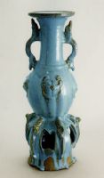 圖片名稱: 鈞窯天藍(lán)釉帖花獸面紋螭耳連座瓶