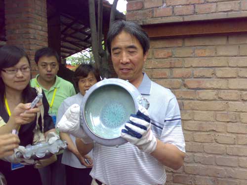 5月27日,河南采風(fēng)團(tuán)一行來到了許昌市的禹州,參觀了禹州鈞官窯遺址博物館,并且現(xiàn)場見證了鈞瓷從制作、入窯、出窯的全步驟!古老的工藝、美輪美奐的鈞瓷震撼了在場的每個(gè)人?粗患x瓷從窯中取出,隨著專家一起鑒定著每件鈞瓷的成色……仿佛自己也是制瓷人一般,心隨著瓷器的好壞而時(shí)起時(shí)伏。這批出窯的鈞瓷均帶著青色,像玉,潤。