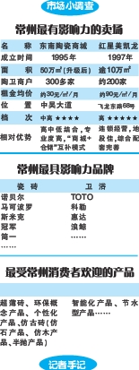 在采訪馬可波羅、能強(qiáng)、浪鯨、奧米茄、簡一等陶瓷衛(wèi)浴品牌經(jīng)銷商時,發(fā)覺,他們幾乎都異口同聲表示“非?春媒衲甑南M(fèi)市場”。在訪談中,同時經(jīng)營能強(qiáng)、益高、紅蜘蛛和羅馬利奧等多個廣東品牌的溫州人蘇恩光表示,今年常州房地產(chǎn)市場并沒有像其它城市的受到大范圍的沖擊,廣東陶瓷在常州大受常州消費(fèi)者歡迎。他自己所經(jīng)營的全部是廣東尤其是佛山的陶瓷品牌,而他的同鄉(xiāng)們?nèi)珩R可波羅的付總、奧米茄的賴總、榮高和駿程的吳總也大多青睞廣東磚。在走訪常州市場前,已先后走訪了南通和蘇州兩市的多家陶瓷賣場,了解到兩市的樓盤均價在每平方米6000元以上,金融危機(jī)下萎縮的房地產(chǎn)市場對建材產(chǎn)品的使用量大為縮減。而常州的這兩年均每平方米保持在4500元的水平,在金融危機(jī)大背景下沒有明顯的升降,作為陶瓷衛(wèi)浴產(chǎn)品的消費(fèi)大戶,房地產(chǎn)市場的健康發(fā)展,很大程度拉動了常州泛建材行業(yè)的發(fā)展。