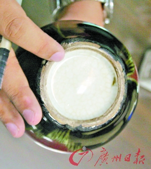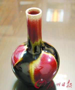 這是一個(gè)曾被某“權(quán)威”拍賣行定價(jià)為300萬(wàn)元人民幣的天價(jià)景德鎮(zhèn)瓷花瓶,為三陽(yáng)開(kāi)泰紅黑釉相間款。不過(guò)他的主人、來(lái)自大良的羅先生,昨日上午則只用尋常的報(bào)紙包住,然后塞進(jìn)一個(gè)舊式的餅干鐵盒,手隨便擰著,慢慢悠悠地坐上公交車,來(lái)到順德博物館請(qǐng)舒翔副館長(zhǎng)進(jìn)行鑒定。