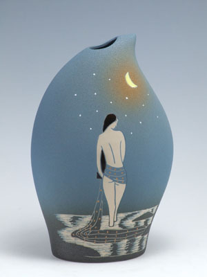 這種由江蘇丹陽(yáng)姜氏彩陶有限公司生產(chǎn)制作的姜氏現(xiàn)代彩陶實(shí)際上包括了幾種類型,其中主要有彩釉陶、無光釉陶、玉珠釉陶、刻花陶和色泥彩繪陶等,手法多樣,種類繁多,給人留下的印象確實(shí)是多姿多彩,變化萬千,具有現(xiàn)代審美特點(diǎn),充滿新意,盡管有的作品還在嘗試階段,還不夠成熟,還存在著明顯的缺點(diǎn),但就整體而言,豐富多彩的現(xiàn)代彩陶藝術(shù)已經(jīng)構(gòu)成了一副美麗的圖畫,使人欣賞之后感到愉悅,看到了美的創(chuàng)造。