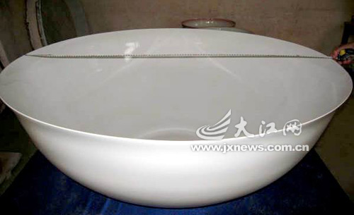 由景德鎮(zhèn)精心燒制完成的一只白薄胎大瓷碗和一塊大白瓷板近日面世。大瓷碗直徑1.23米、高1.58米、厚度為1.7毫米,形如一只大浴盆;白瓷板長(zhǎng)3.68米、寬1.58米,也碩大無(wú)比。經(jīng)有關(guān)專(zhuān)家和景德鎮(zhèn)陶瓷協(xié)會(huì)鑒定,兩件作品系景德鎮(zhèn)陶瓷燒造有史以來(lái)同類(lèi)品種中單體尺寸最大、拉坯制作工藝最難的作品,堪稱(chēng)“碗王”、“板王”。據(jù)悉,兩件作品正在申報(bào)吉尼斯世界紀(jì)錄。