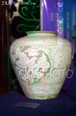 白釉剔刻花三開光折枝牡丹紋罐 瓷質(zhì),高29厘米,口徑24.5厘米,腹徑28厘米,底徑20厘米。直口卷唇,短頸豐肩,鼓腹下收,暗圈足,以弧線及花葉紋襯托,腹部剔刻三開光牡丹紋,層次分明,剔刻手法嫻熟,白釉剔刻花完整,在西夏瓷器中極為罕見,此器當(dāng)為大珍。