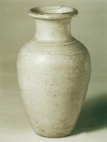撇口,細頸,豐肩,平底,肩部以下漸收斂,淺刻弦紋數道。造型豐滿端莊,比例適調。通體施白釉,釉色潔白潤澤。此器是一件典型的唐代邢窯制品,唐代陸羽稱邢窯制品“類銀類雪”。主要是贊譽其釉飾的白潤潔凈,說明邢窰制品在當時已得到世人的贊美。邢窯制品流傳至今的器物多為盤或碗,瓶類制品較為稀少,此瓶屬邢窯瓶類制品中的精品,因而顯得更為珍貴。