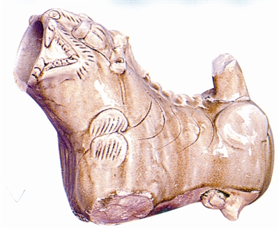 岳州窯的瓷塑制品除了有青蛙、象首、獸頭、馬、牛、羊、駱駝、鵝、雞和奇形怪狀的鎮(zhèn)墓獸外,還有各種各樣的人物,對坐俑、騎馬俑、武士俑、持棍俑、持袋俑、吹奏俑、小丑俑、說唱俑、胡人俑、牽馬俑。最漂亮的是一個少女,臉型尖圓,肥瘦適中,櫻桃小口、柳眉杏眼、脈脈含情。兩鬢環(huán)發(fā),穿百褶裙,翹頭繡鞋外露,亭亭玉立。還有一組身著胡裝的樂隊(duì),頭梳高髻,身穿圓領(lǐng)百褶裙,袒胸、含笑作跪坐狀,手擊羌鼓、吹洞蕭或彈豎琴,瓷塑中還有多種發(fā)型和帽子式樣,這些給研究當(dāng)時的民風(fēng)民俗提供了可貴的資料。