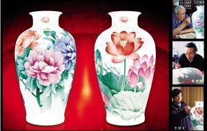 新中國成立后,醴陵“官窯”按照國家要求陸續(xù)燒制成功少量特貢人民大會(huì)堂、國家領(lǐng)導(dǎo)人使用和作為國禮贈(zèng)送給外國元首的瓷器,這些稀有的國瓷在60年中充當(dāng)了“國家的名片”,在世界范圍內(nèi)代表中國的形象。其中陳揚(yáng)龍大師手繪“牡丹瓶”尤為突出,曾被多次選用,被稱為紅色“官窯”中的“國寶貢瓷”。如今,60周年大慶,醴陵“官窯”被賦予了更神圣的使命--燒制新中國60周年唯一的“特貢國瓷”。