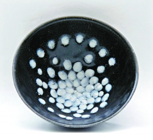 專(zhuān)家介紹說(shuō),建窯黑釉盞的特征一是胎含鐵量高,一向有“鐵胎”之稱(chēng),胎體厚重,呈黑灰色、紫黑色,胎質(zhì)粗糙堅(jiān)硬,露胎處色沉而無(wú)光。建窯出產(chǎn)的黑釉瓷產(chǎn)品主要有曜變,金兔毫、銀兔毫、油滴、鷓鴣斑紋為主,這些斑紋,人工無(wú)法控制,它既依靠釉料配方的變化,又依托窯內(nèi)燒成溫度與氣氛的不同而產(chǎn)生不同的紋理,往往產(chǎn)生意外的效果,因此具有無(wú)窮的藝術(shù)魄力,似為“鬼斧神工”之作,具有很高的欣賞價(jià)值。其中曜變斑紋由于紋斑光彩奪目,異常絢麗,在建盞中最為珍貴。目前日本所藏的幾件聞名世界國(guó)寶級(jí)的“曜變”天目盞,就是我國(guó)建窯的產(chǎn)品。兩宋時(shí)期,朝野上下興盛“斗茶”之風(fēng),黑釉器形制以碗為主的建盞備受垂青,建盞的特點(diǎn)最適合斗茶。首先建盞的外觀具有典型的民族風(fēng)格和濃郁的東方藝術(shù)色彩,變幻莫測(cè)、絢爛多彩的窯變釉給人以奇特的美感。建盞造型別致,口大腹深,沿薄底厚,胎質(zhì)粗硬,具有良好的保溫性。
