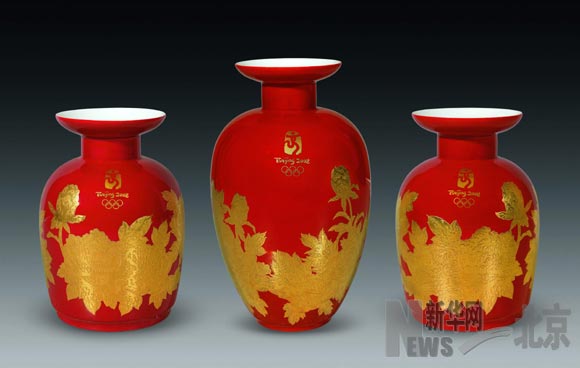 “世紀(jì)華彩——金璧丹霞”奧運(yùn)珍藏紀(jì)念瓷瓶用獨(dú)創(chuàng)的珍貴紅釉為基調(diào),以中國的國花29朵牡丹花為立體裝飾,花面豐滿,有著深厚的民族文化內(nèi)涵,象征著國家的繁榮昌盛和偉大的民族精神,以及對高貴藝術(shù)品質(zhì)的追求,寓意著北京奧運(yùn)的圓滿而勝利的舉辦;整套瓷瓶造型設(shè)計獨(dú)特新穎,結(jié)合現(xiàn)代藝術(shù)的審美,瓶口為盤口,形似點(diǎn)燃圣火的圣火臺,三件瓷瓶組合在一起又好似奧運(yùn)領(lǐng)獎臺,寓意奧運(yùn)圣火和奧運(yùn)精神永相傳。