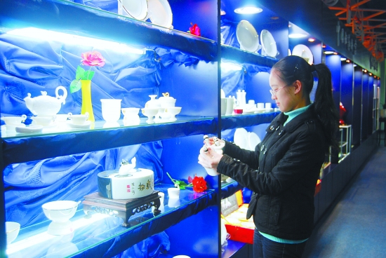 德化出臺(tái)政策鼓勵(lì)發(fā)展日用瓷、禮品瓷,幫助企業(yè)創(chuàng)新轉(zhuǎn)型。圖為消費(fèi)者在選購(gòu)德化日用瓷。