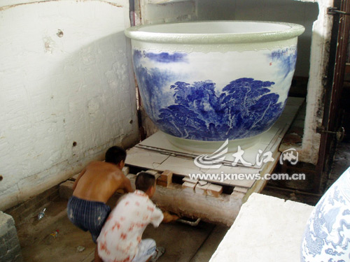 為制作這件作品,徐四金投入10余萬元,歷經(jīng)多次失敗,歷時(shí)1年多才燒制成功。據(jù)他從上海大世界基尼斯紀(jì)錄總部得來的消息,目前尚沒有最大瓷缸的紀(jì)錄,一經(jīng)該部確認(rèn),這只瓷缸將成為世界第一大缸。